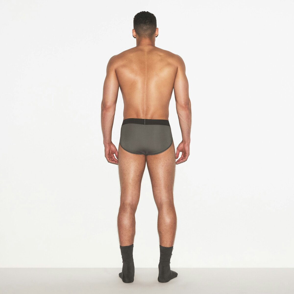 • Breathable mid-weight Cotton, Spandex for recovery and stretch, SKIMS branding on exterior waistband, Engineered pouch and gusset for comfort