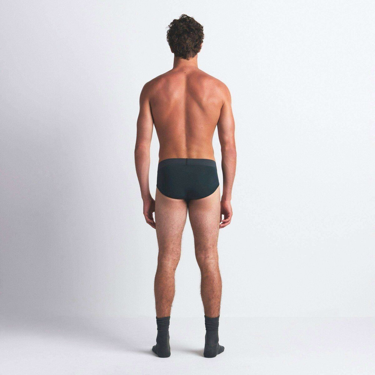 - Breathable mid-weight Cotton, Spandex for recovery and stretch, SKIMS branding on exterior waistband, Engineered pouch and gusset for comfort