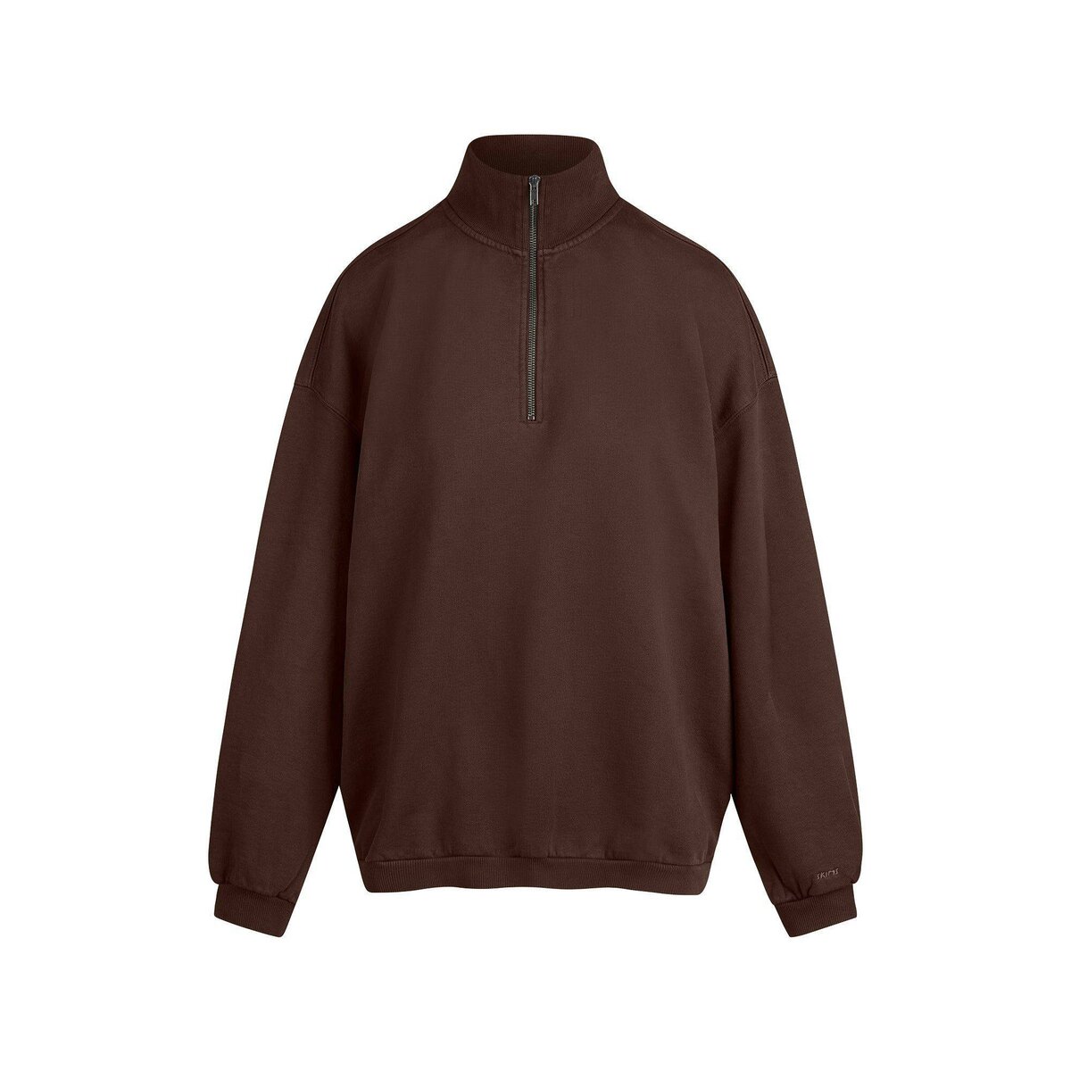 Comfort you’ll always come back to. This oversized half zip is made with our ultra-soft heavyweight Boyfriend Fleece for serious warmth. Features a sleek mock neckline and drop shoulder silhouette. Complete with ribbed details at the neck, cuffs, and band and an embroidered logo on the left sleeve. Fits true to size.