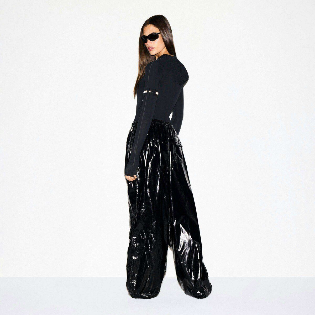 Make a bold statement in these baggy cargo pants. Lightweight and glossy, they feature adjustable drawcords at the sides so you can style them your way.
