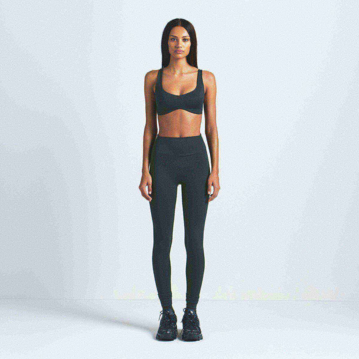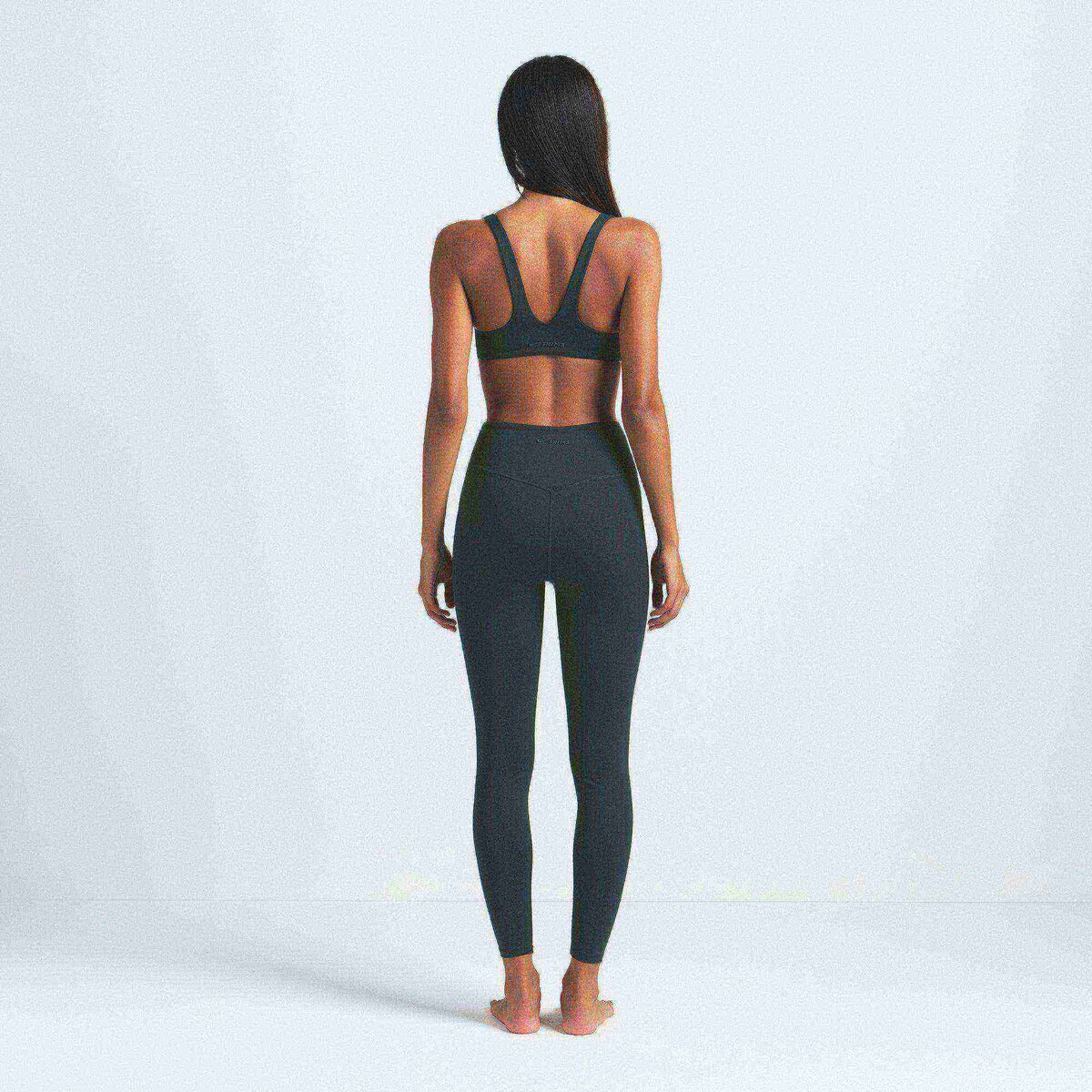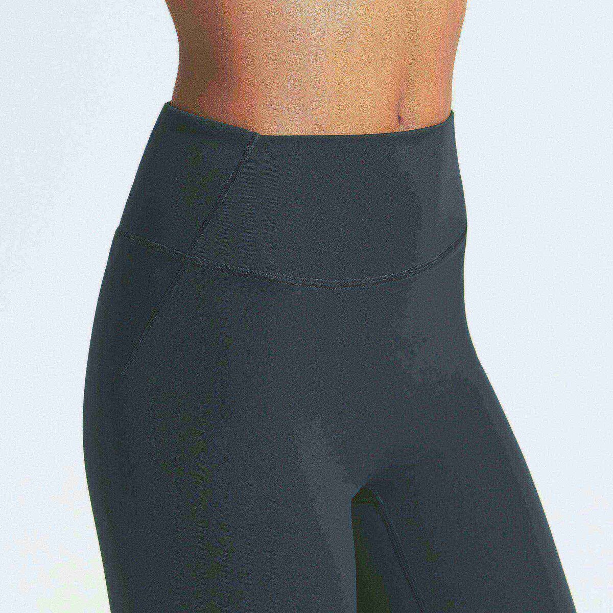- High-waisted, Thick double layered waistband, Side dart detail, V-shape seams to accentuate butt shape, Silicone matte logo at center back, 100% Cotton gusset, Fits tight to body, 7/8 length