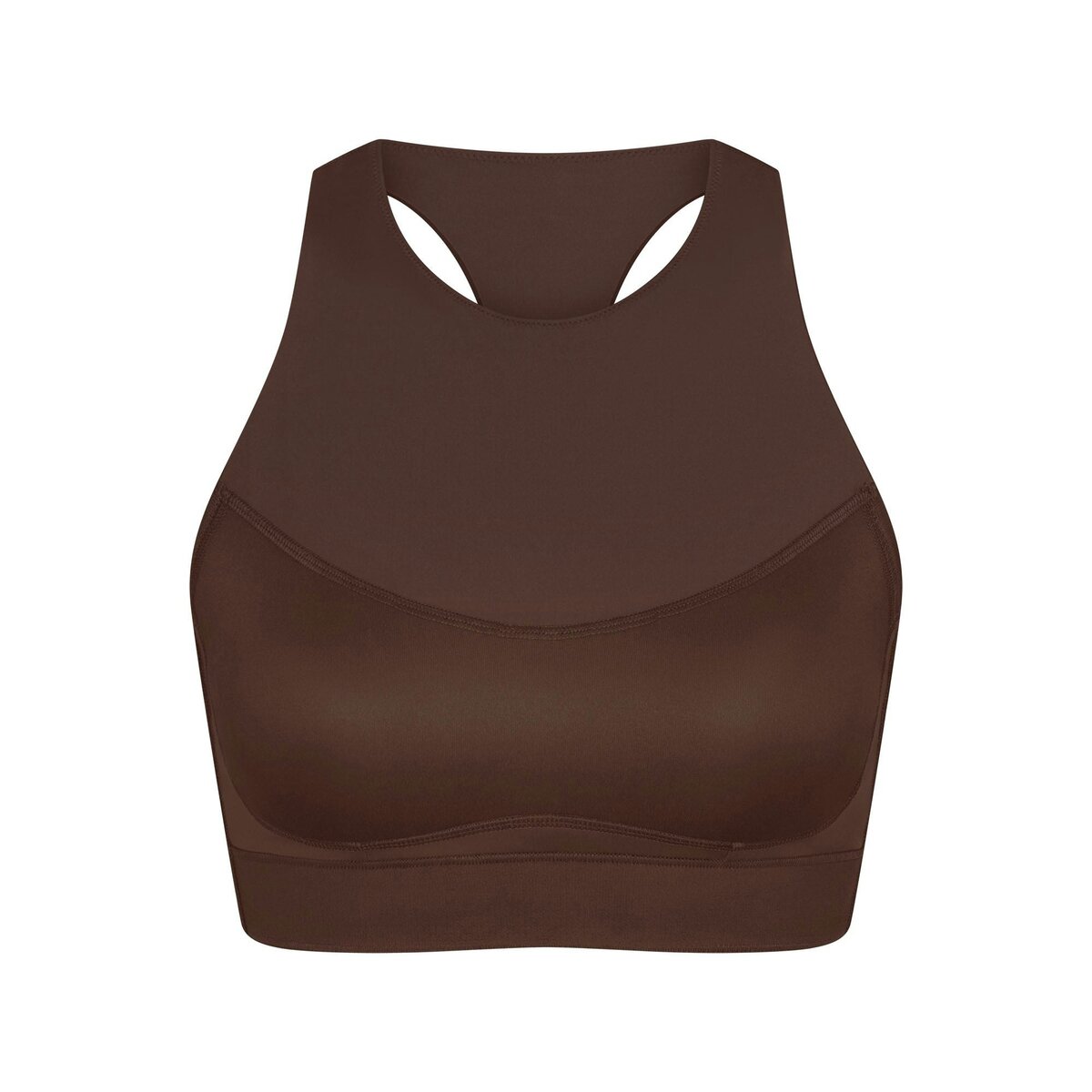 Offering high support, this bra has built-in pads that mold to you. Its racerback design, high neck, and internal bonded panels provide extra support and coverage while our sculpting Matte fabric and sweat-wicking Nike Dri-Fit™ technology make it a go-to for high-impact workouts and all-day wear.