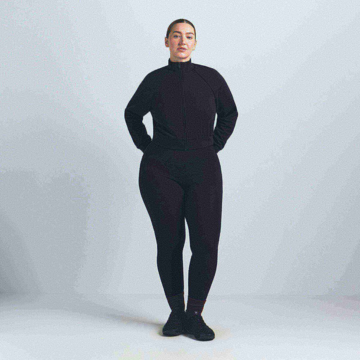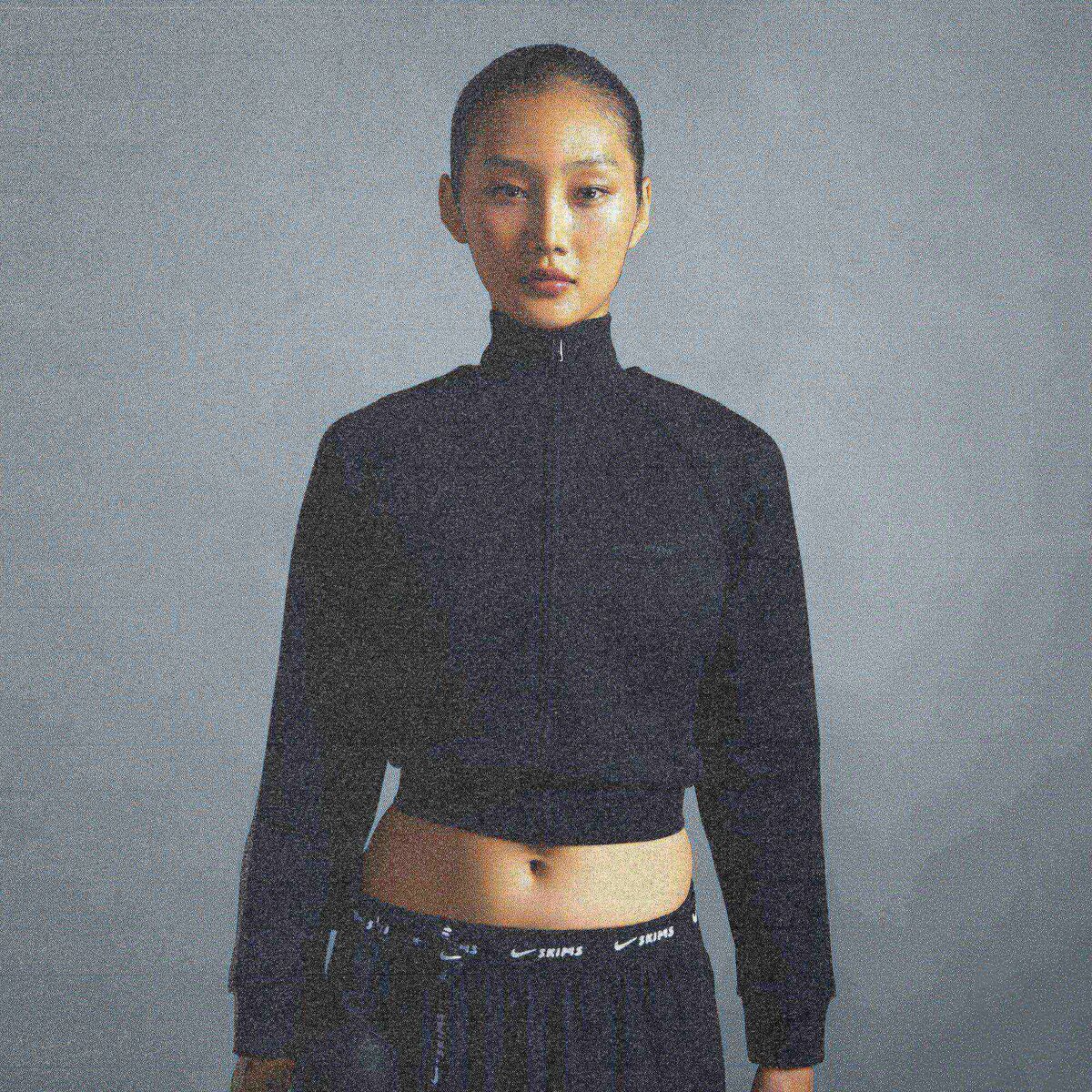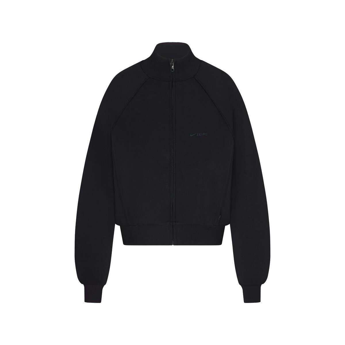 This sporty, track-inspired jacket is cut from smooth knit fabric for a sleek feel. The shrunken silhouette offers a body-hugging fit that moves with you from warm-up to wind-down.