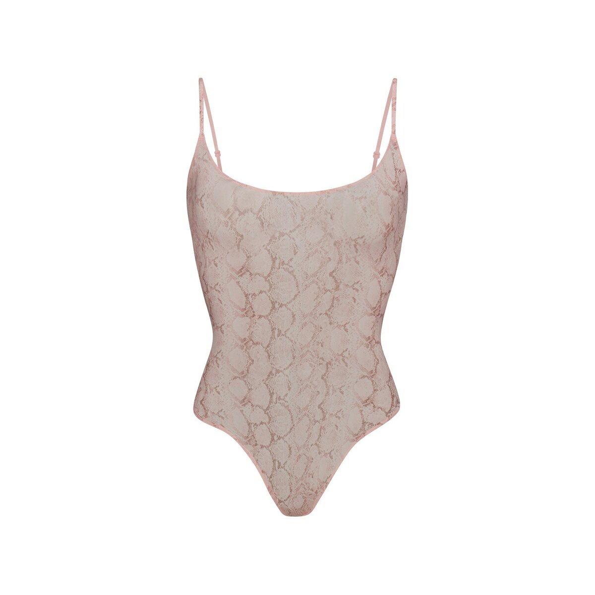 - Low scoop neckline, Adjustable straps, Cotton gusset with snaps, Thong back coverage