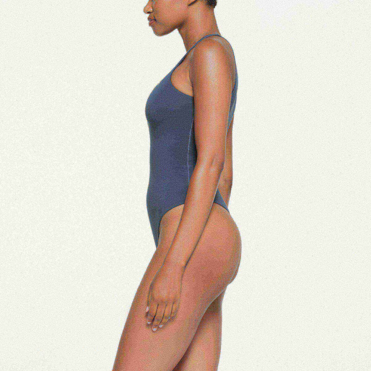 Elevate your look with the SKIMS FOR TEAM USA COTTON JERSEY OLYMPIC HIGH NECK BODYSUIT in NAVY. Limited edition. Shop now.