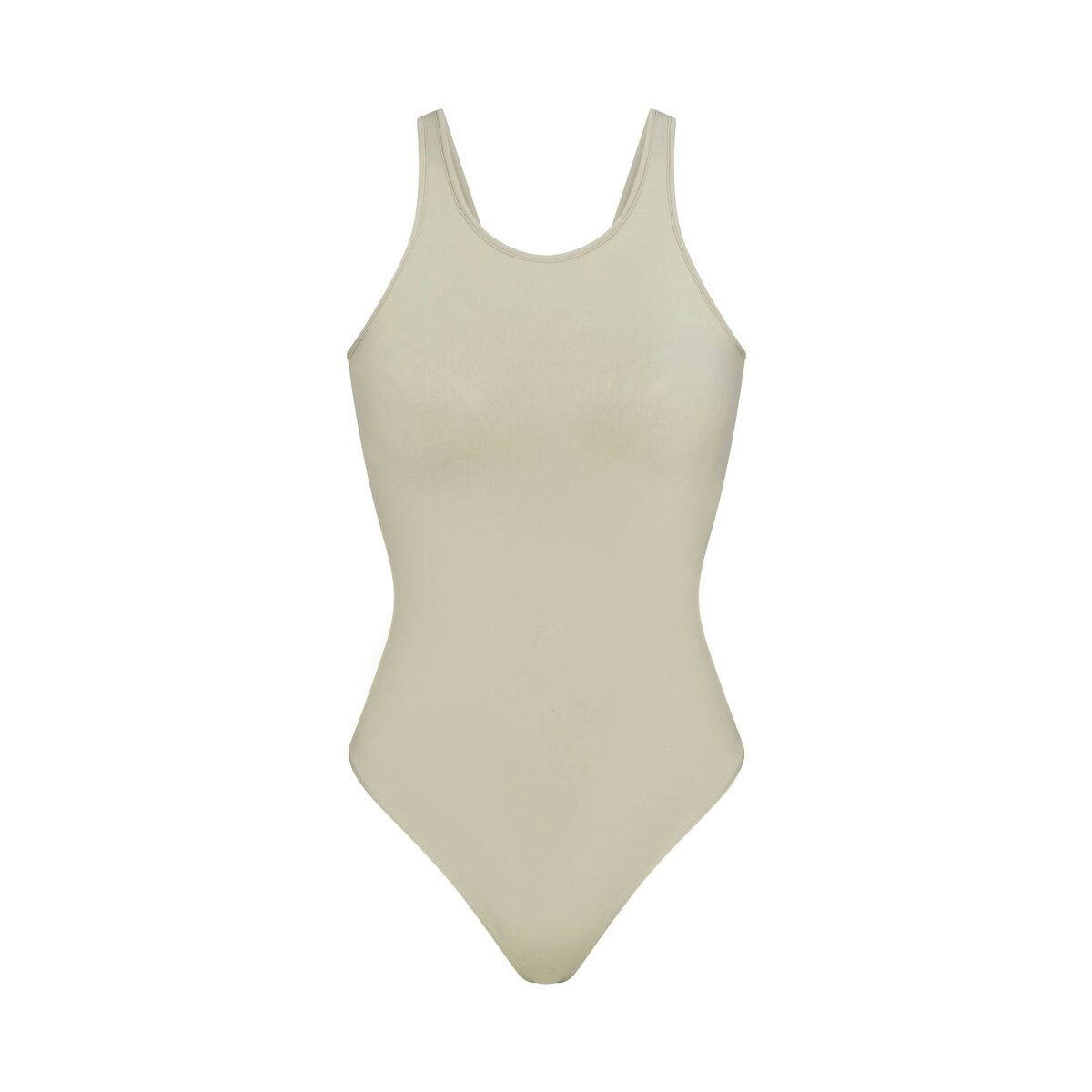 - Scoop neckline, Shelf bra with molded lightly lined pads, Underbust elastic for light support, Thong back coverage, Snaps at gusset