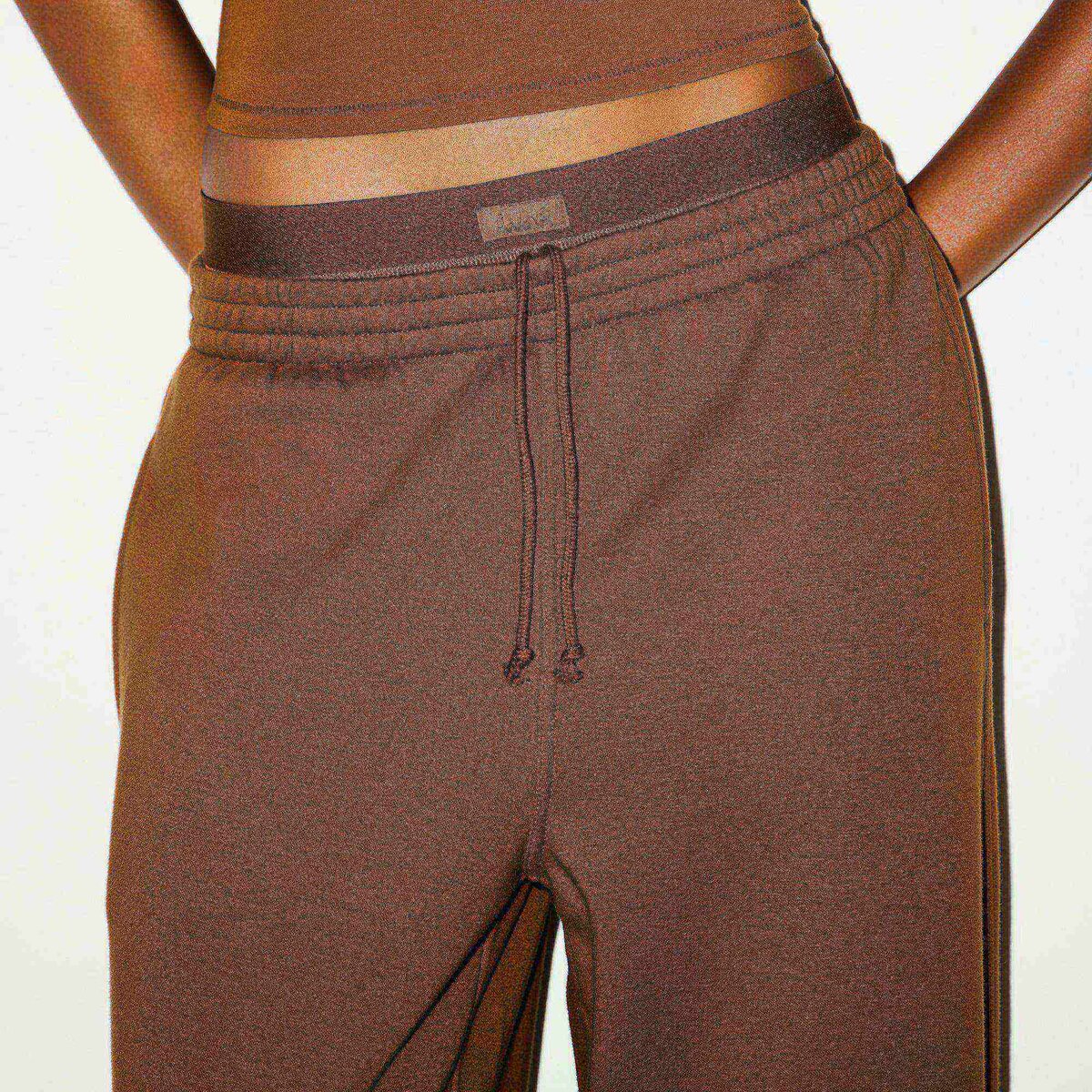 Nail the double waistband trend. This off-duty pant has an oversized fit with a flattering high rise and an effortlessly cool exposed brief waistband. Made from our comfy, cloud-like fleece with the softest plush feel. Features an elastic waist with an interior drawstring and side pockets. Labeled with the SKIMS logo at the center front. Fits true to size.