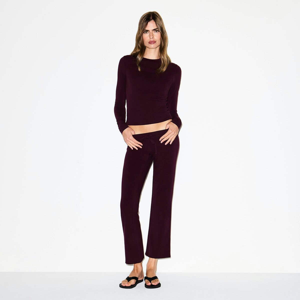 • Gwen is size 2, 32B, and 5′ 10″ (178 cm), wearing SKIMS S