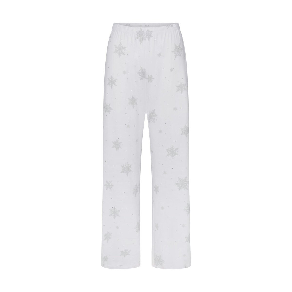 Comfort meets shine. These straight-leg pants offer an encased elastic waistband and interior drawcord for a perfect, customizable fit. Made from plush pointelle fabric with rhinestone accents, they bring festive flair to your holiday lounge looks.