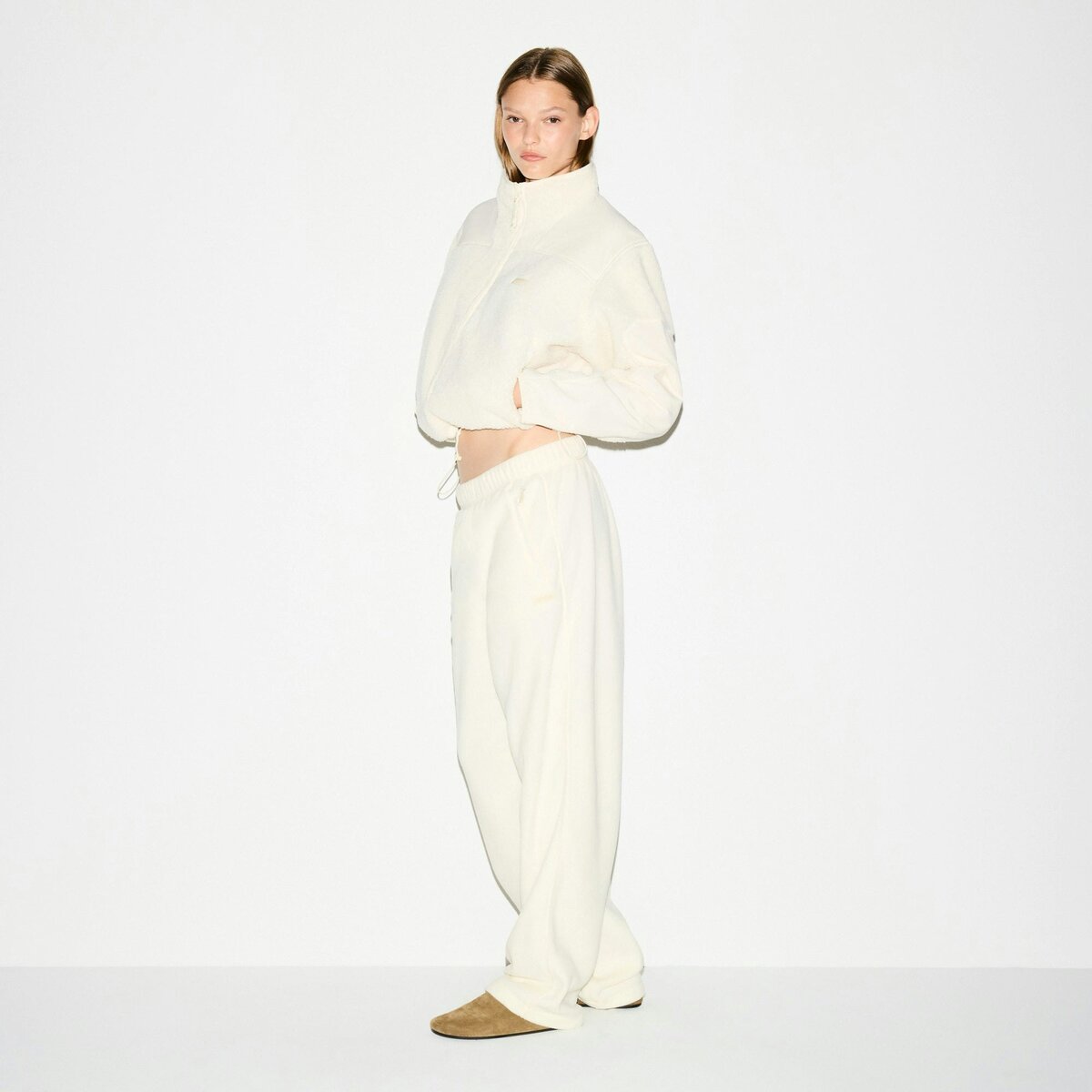 Warm up your cold-weather wardrobe with this chic straight leg pant, designed in our plush, mid-weight polar fleece. Features side zipper pockets, contrast detailing, and an interior bungee cord for an adjustable fit. Fits true to size.