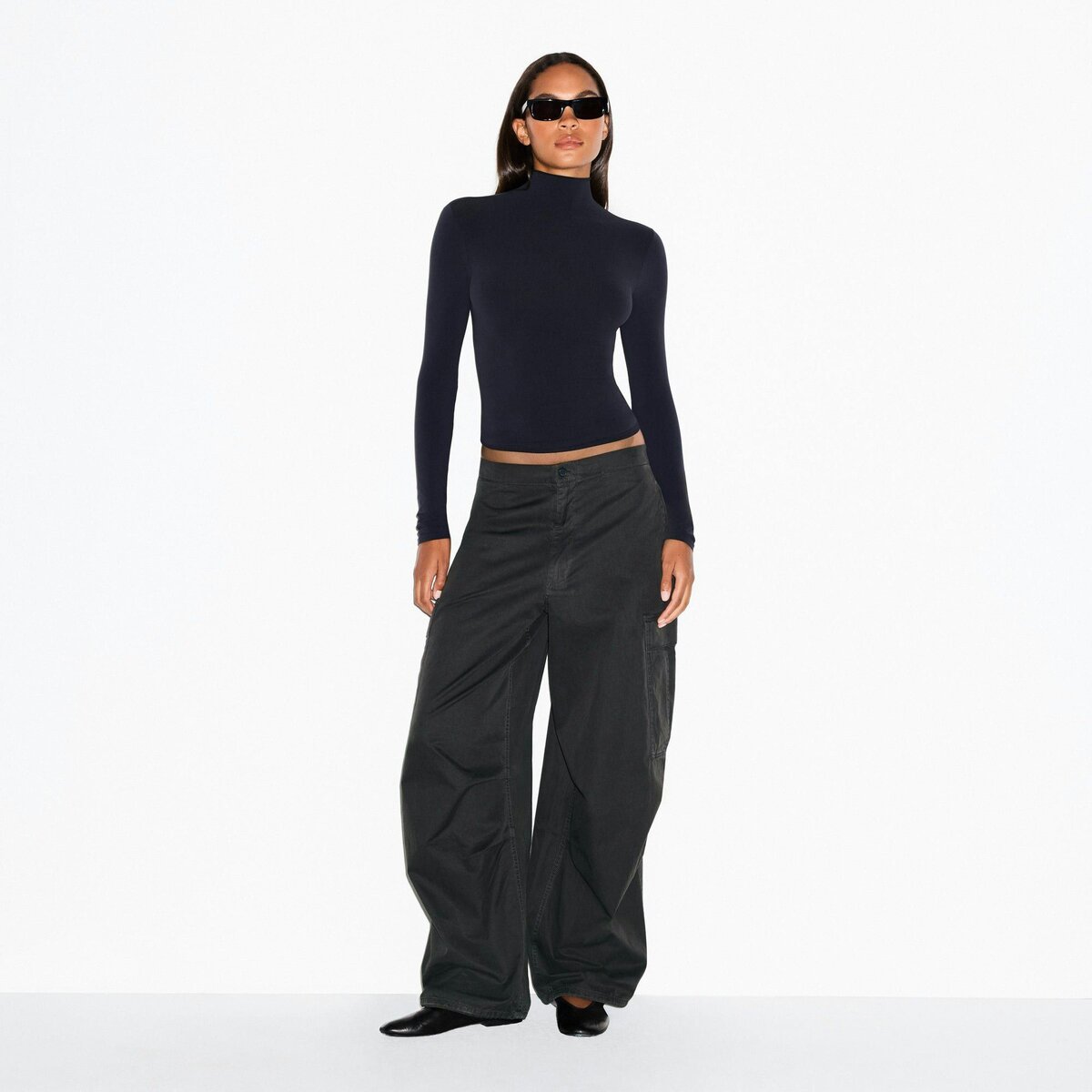The classic cargo, reimagined. Made with our midweight, 100% cotton woven fabric, these oversized button-close pants feature an adjustable bungee at the hem for a comfortable fit. Complete with welt pockets and patch pockets at the sides and back. Fits true to size.
