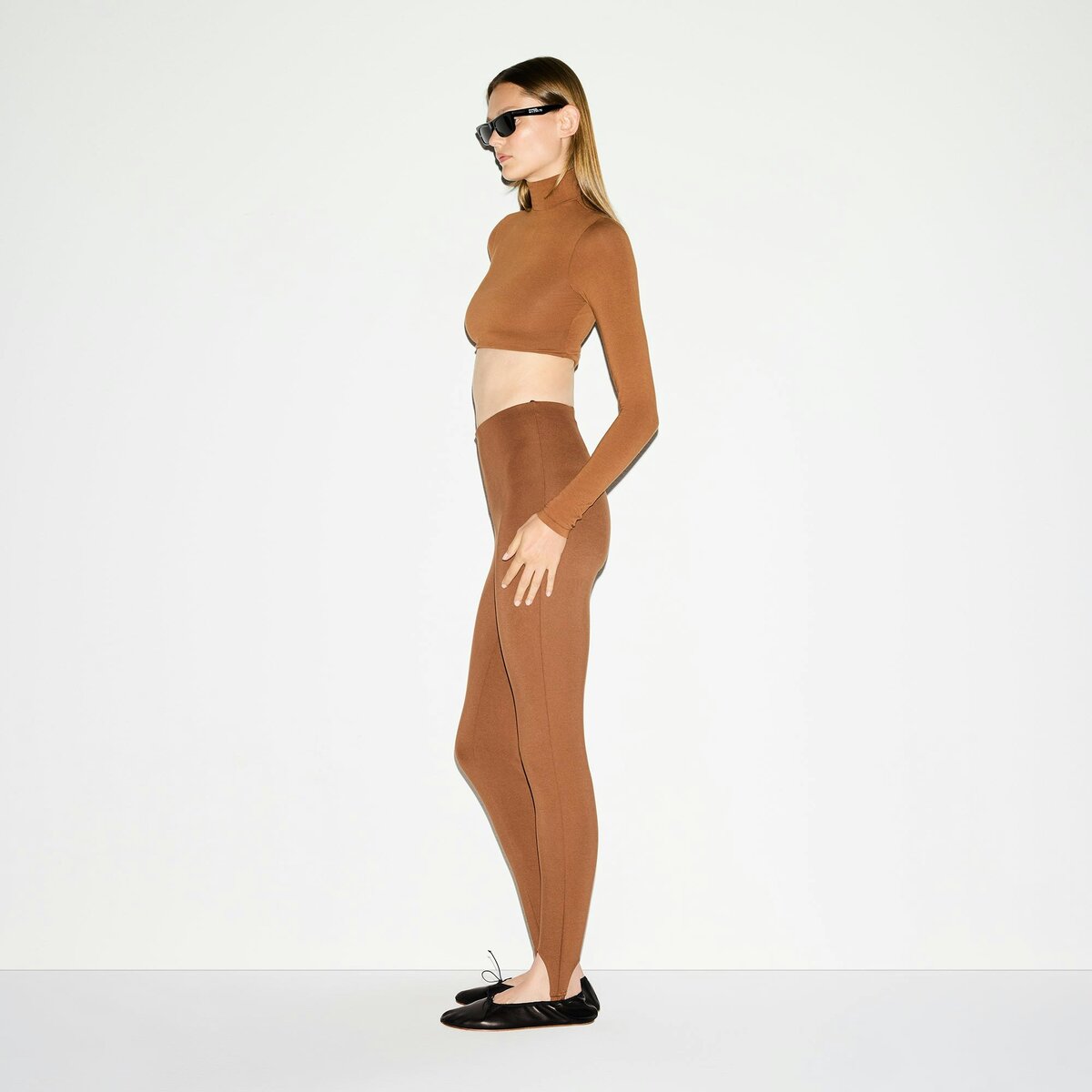 Step up your office to outing style with these high-waisted, pull-on leggings. Designed in our soft, smooth mid-weight fabric, this bottom features an elastic waistband and stirrup detail for polished, tailored style. Complete with a woven SKIMS logo on the interior waistband and flattering back dart detailing. Fits true to size.
