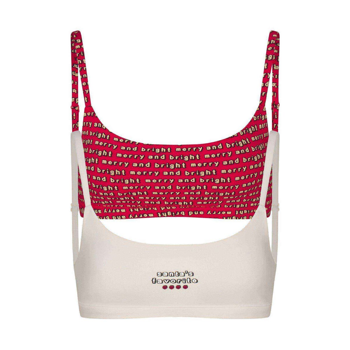 Festive and flattering. Designed in our crave-worthy Cotton Jersey, this 2-pack of pullover scoop bralettes stands out with Cactus Plant Flea Market’s vibrant designs. Each features adjustable straps and an elastic underbust for light support.