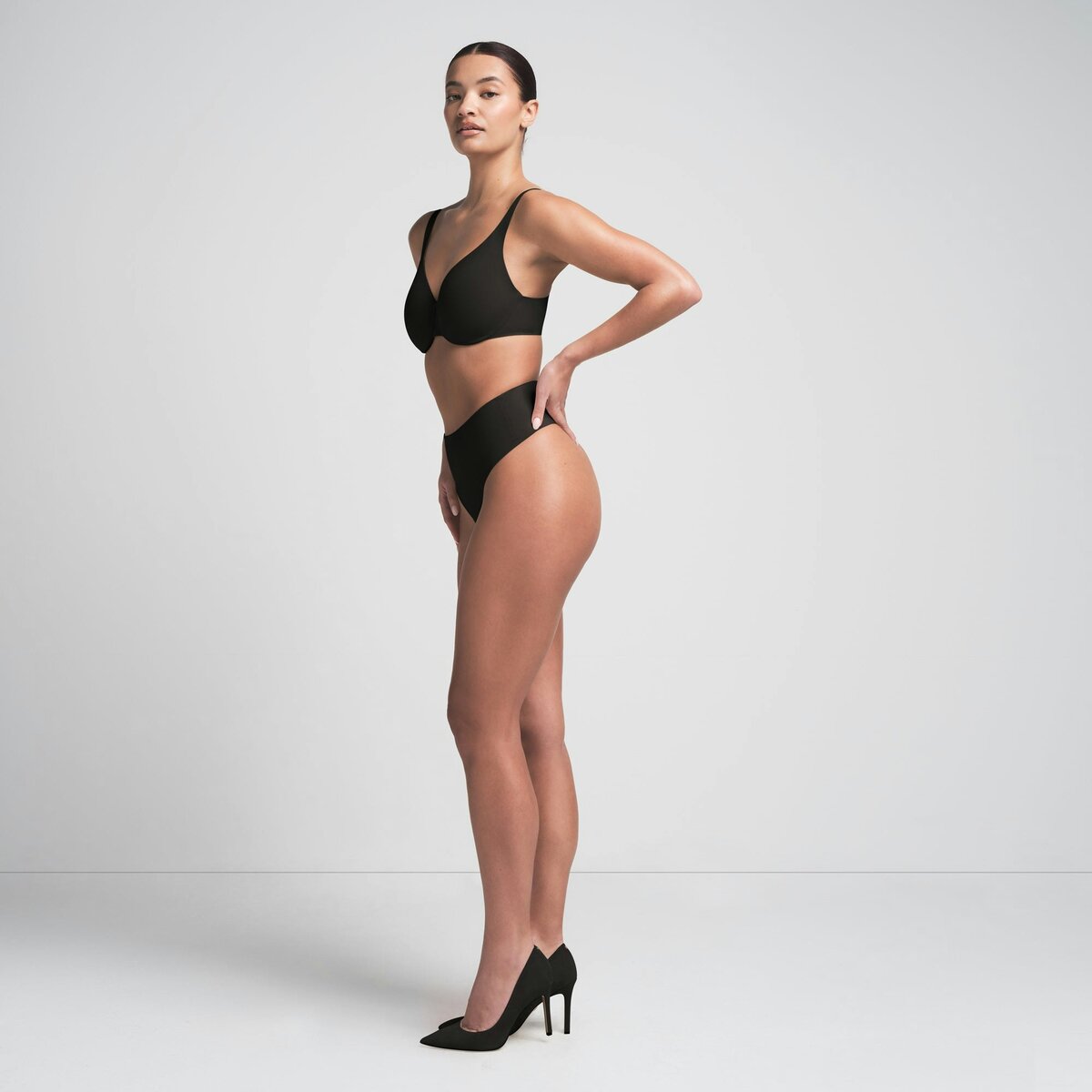 Flatters, never flattens. Reduce your breast projection by up to two inches with this plunge minimizer bra, designed in the softest microfiber fabric. This solution features full coverage cups and a hidden, cushioned underwire for all-day support and a less pronounced bust. Complete with adjustable straps, a hook and eye back closure, and silicone logo detail. Fits true to your SKIMS bra size.