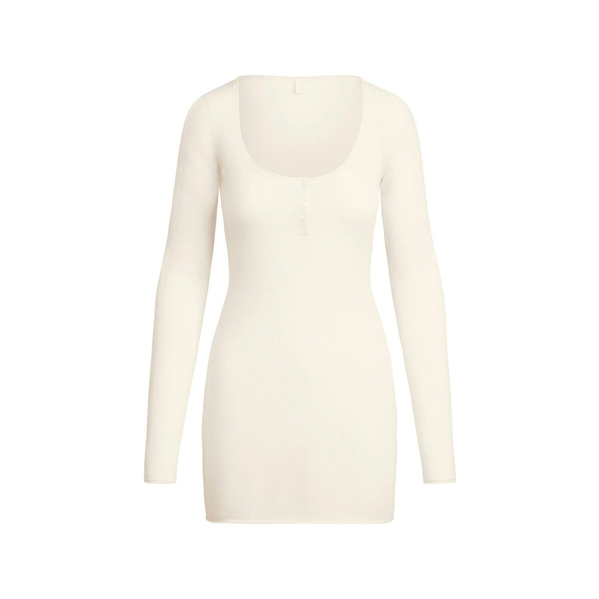 Slip into premium, soft comfort. Our 100% Grade A Cashmere makes this henley mini dress a cozy must-have addition to your wardrobe. Features a semi-sheer finish, scoop neckline, and rolled edge details. Fits true to size.