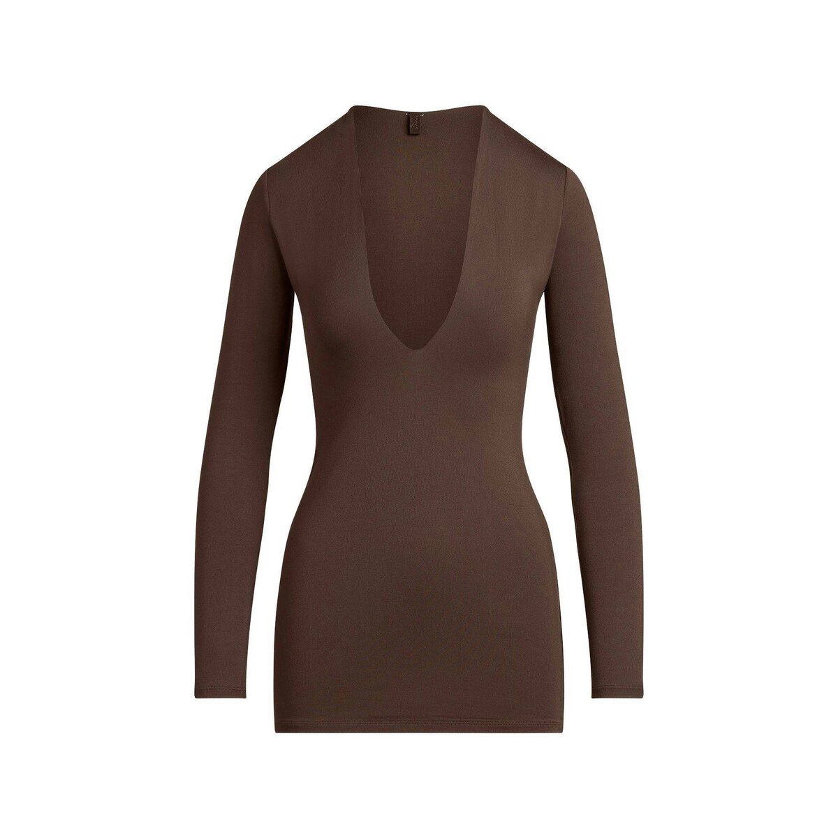 Dress to impress. Show some skin in this deep plunge long sleeve mini, made in our smooth and slinky modal with a body-hugging fit. Fits true to size.