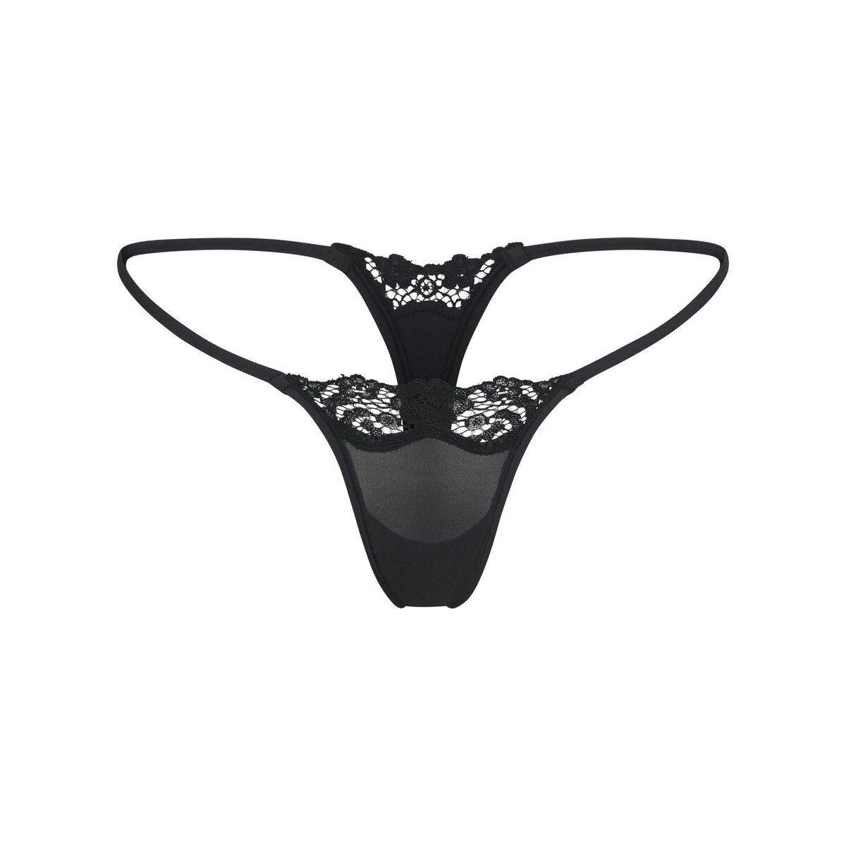 • String thong style, Barely there side straps, 100% Cotton gusset, Stretchy lace trim along front and back waist