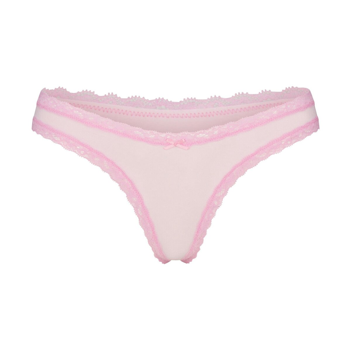 Sweet nothing. Made from lightweight, breathable cotton, this thong features tonal lace trim and a center bow for an ultra-feminine look. Complete with a 100% cotton gusset. Fits true to size.