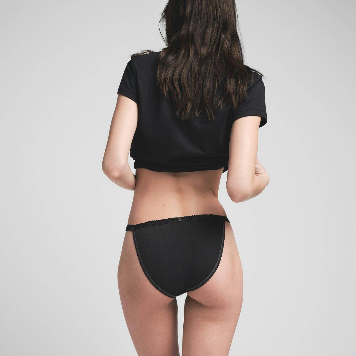 Lightweight cotton comfort meets feminine allure in this string bikini. With delicate lace elastic and a dainty rosette detail, this bikini instantly sweetens your top drawer. Includes a 100% cotton gusset. Finished with a repetitive logo on the picot elastic waistband. Fits true to size.
