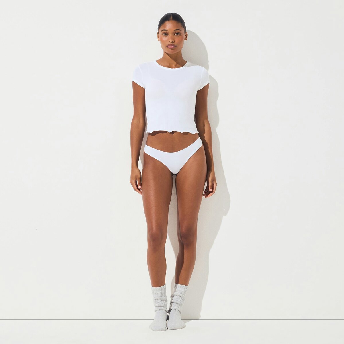 • Ines Is Size 4 And 5′ 9.5” (177 cm), Wearing SKIMS S
