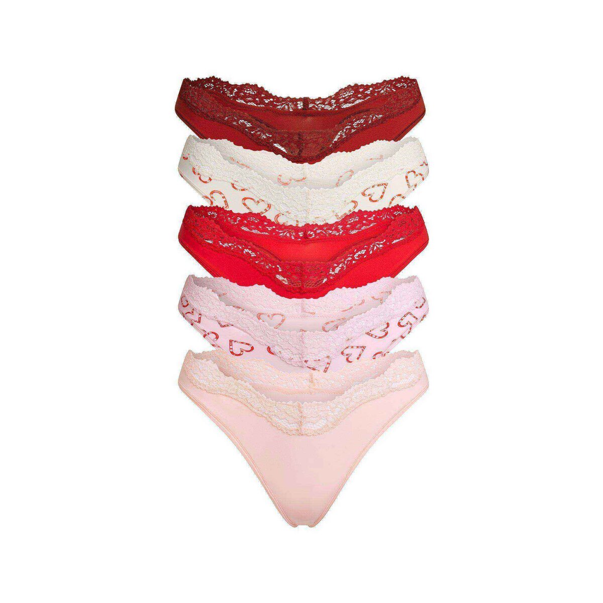• Dipped thong 5-pack, Minimal coverage, 100% Cotton gusset, Lace trim along front and back waist