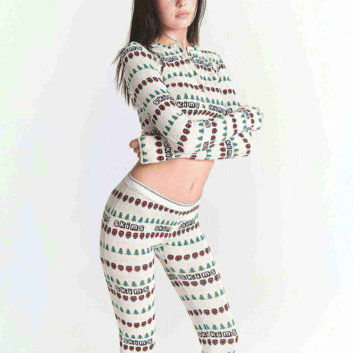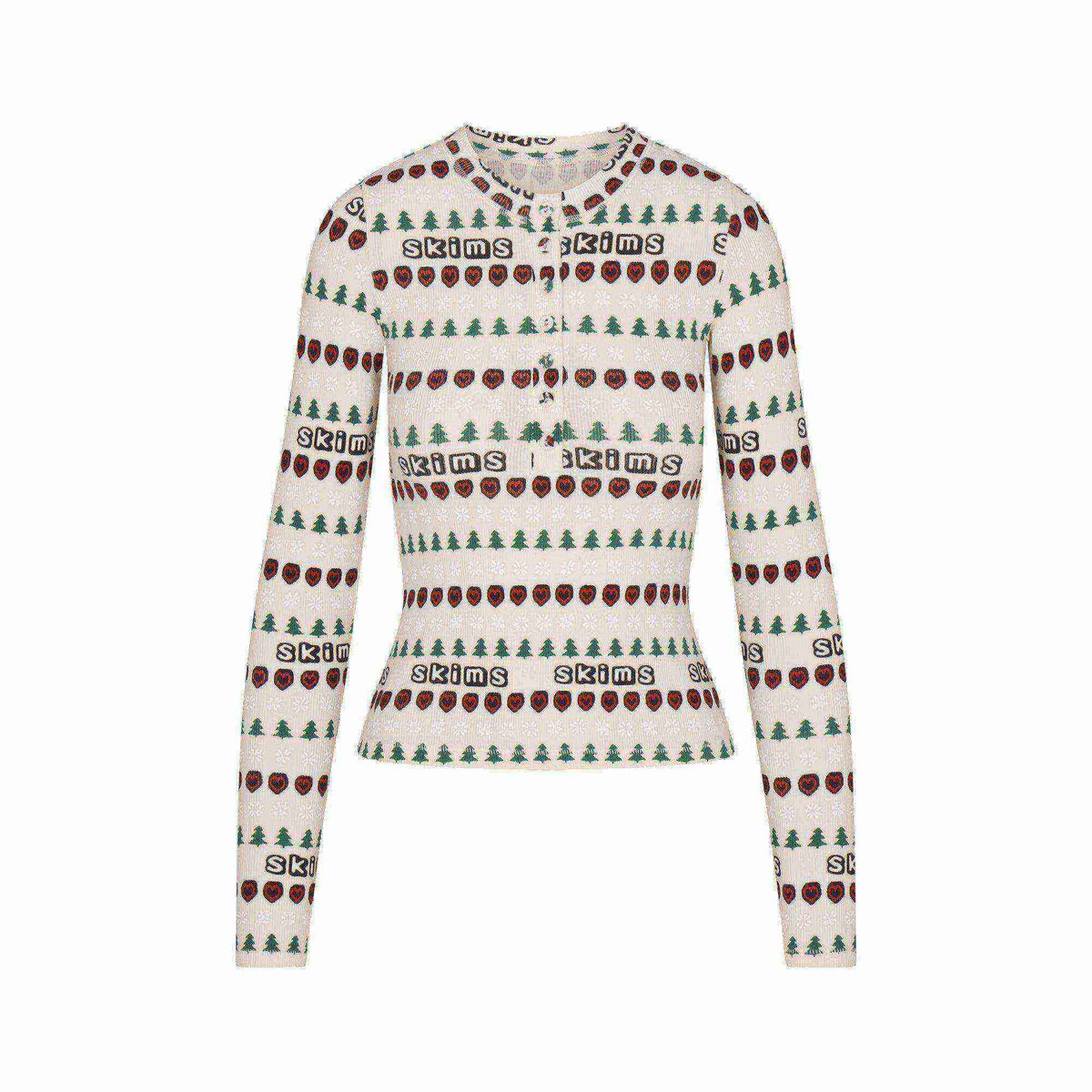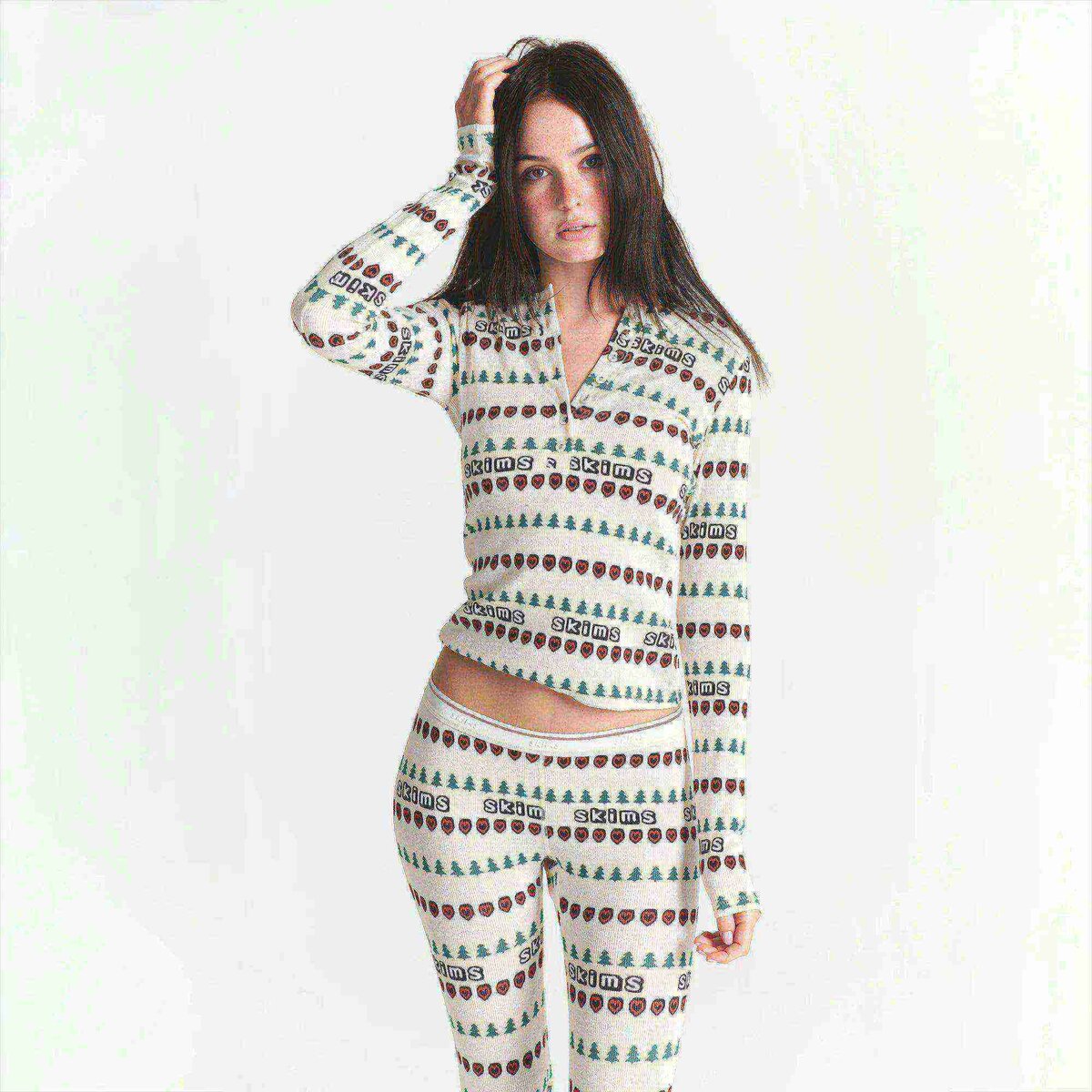 Lounge in style and comfort. Made from our signature, stretchy Cotton Rib fabric, this set blends cozy comfort with bold holiday designs from Cactus Plant Flea Market. The scoop henley top pairs perfectly with low-rise leggings featuring an elastic waistband.