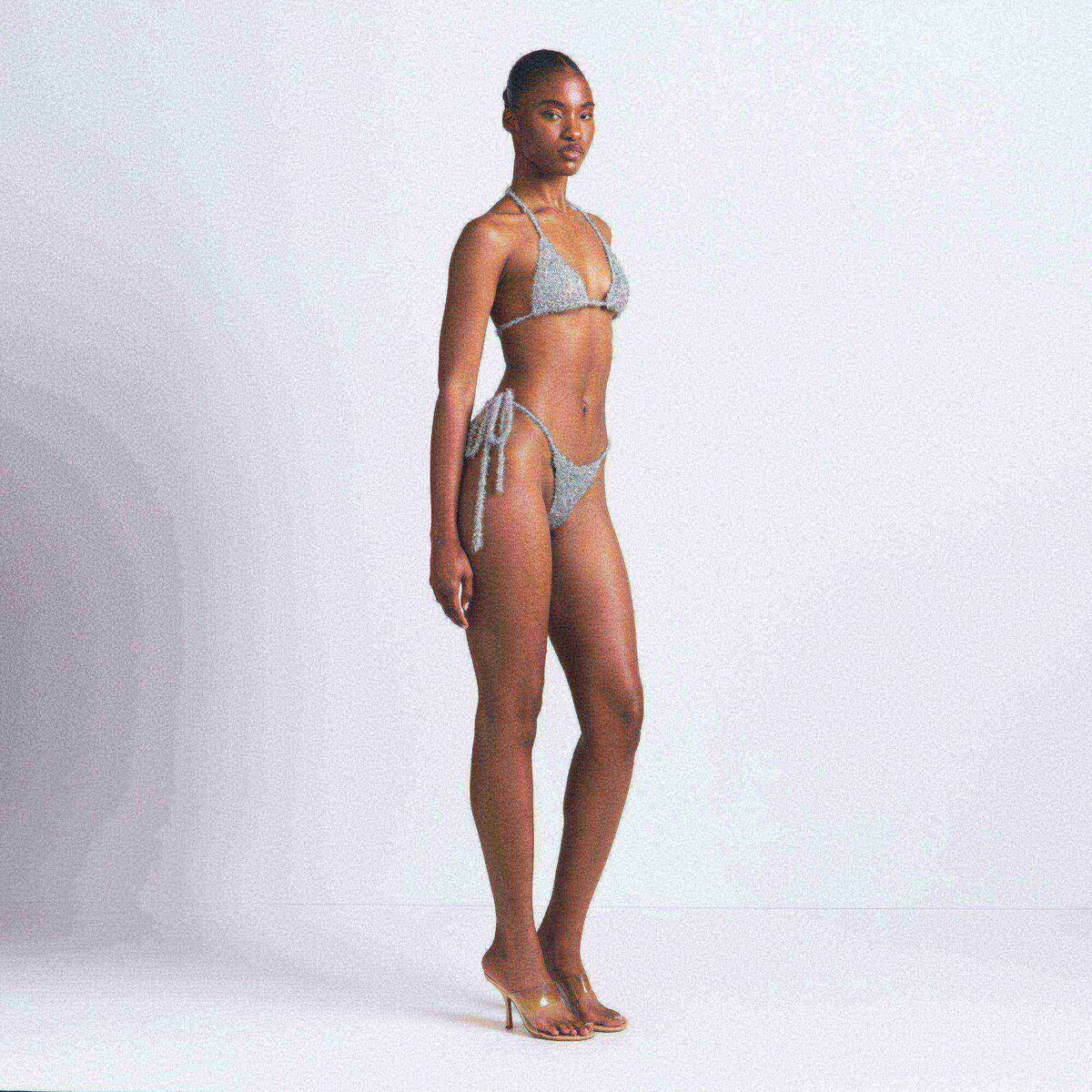 Trimmed in temptation. This ultra-playful two-piece is designed to sparkle with triangle cups and satin ties at the neck and back for an adjustable fit….