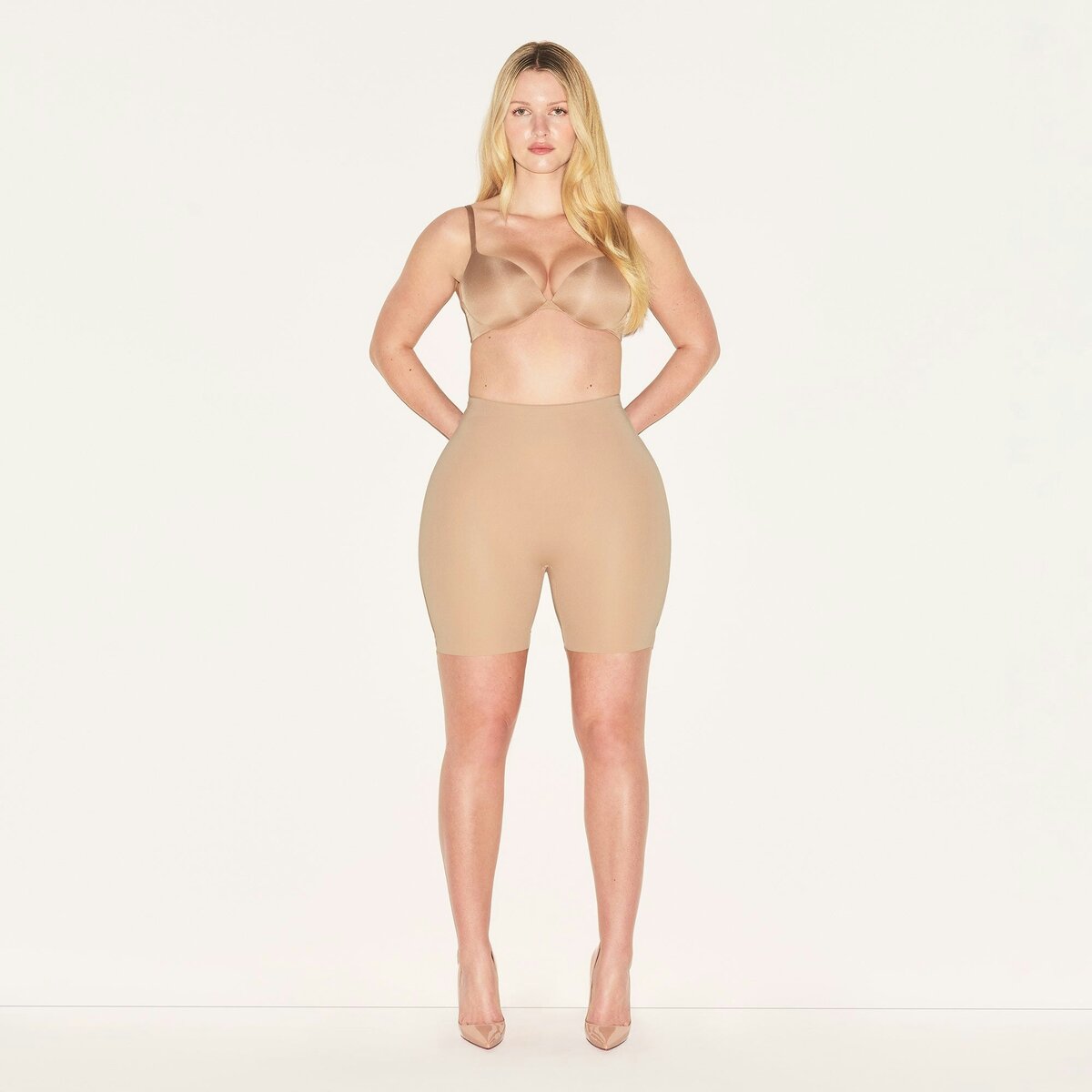 • Kate Is Size 6 And 5′ 9.5” (176.5cm), Wearing SKIMS M