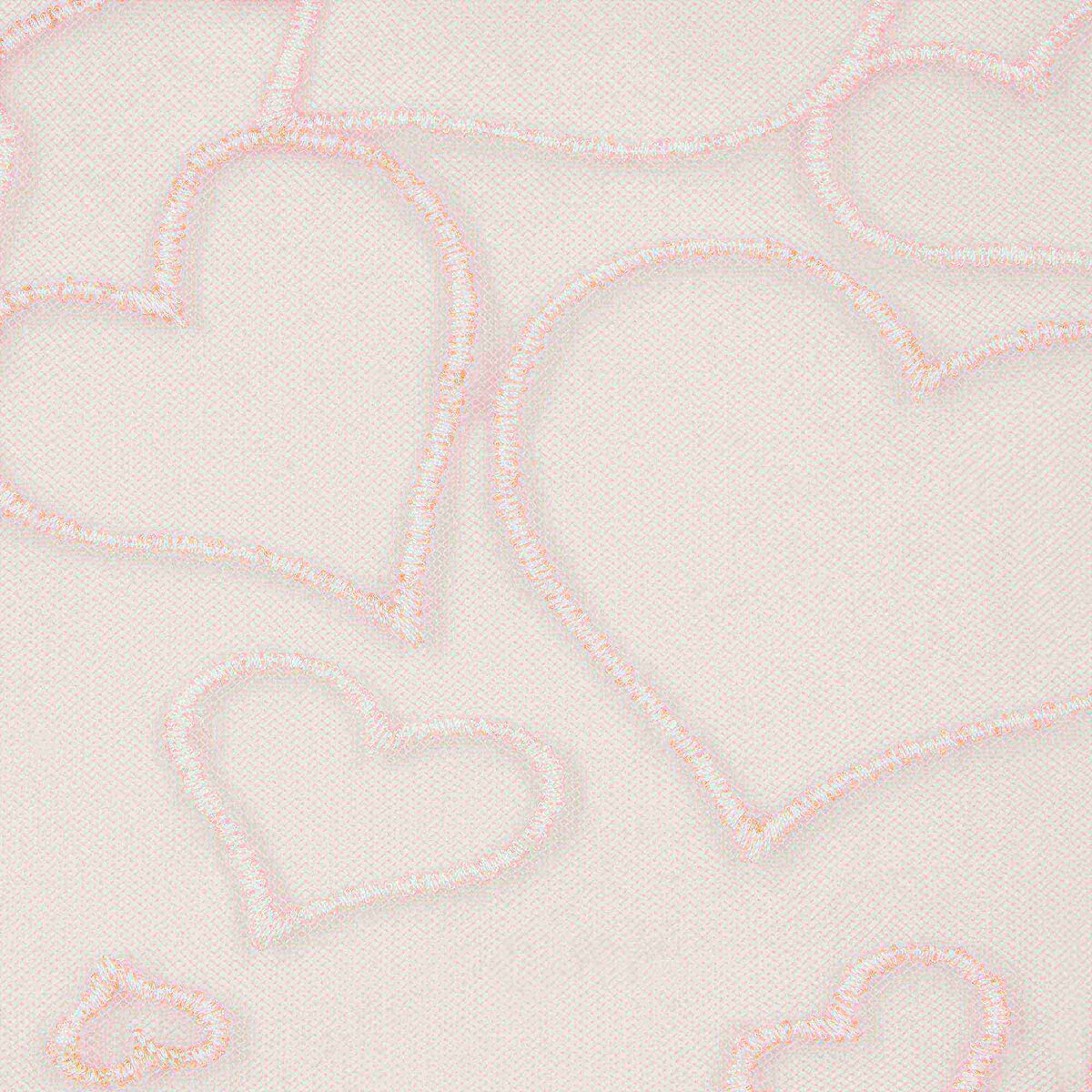 • Unlined demi cups, Embroidered heart tulle fabric at cups, center front and center back panels, Underwire for support interior wing elastic for support, Adjustable straps, Bows at center front and straps, Spiral steel boning at front, side and back seams, Hook and eye closure at center back