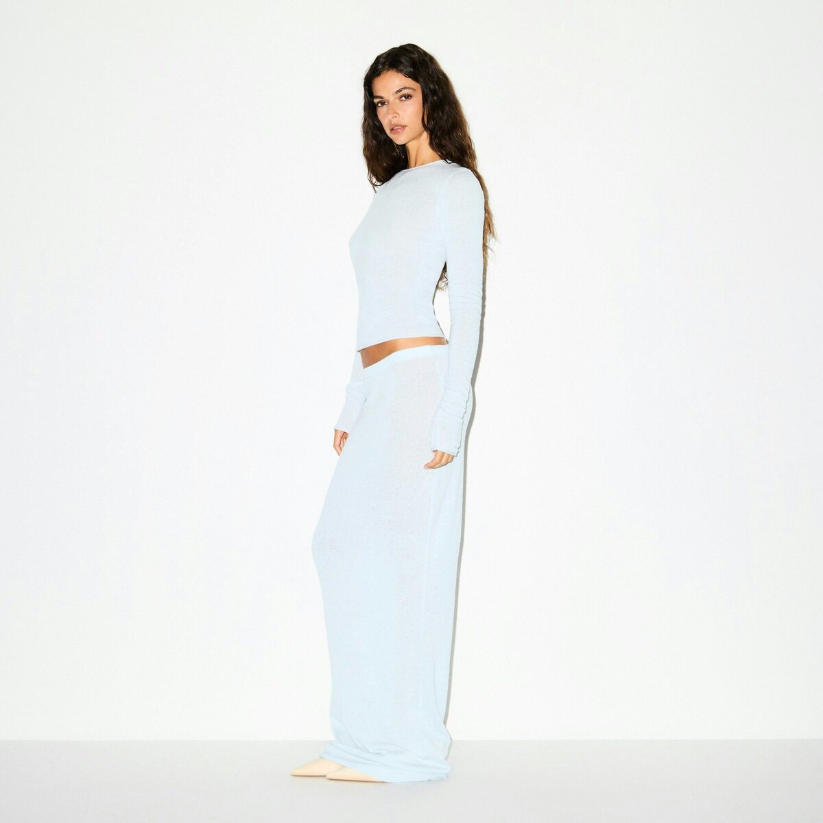 Delicate in design, soft in feel. A foundational layer, this semi-sheer, drapey long sleeve top is made in our lightweight, 100% Grade A Cashmere for premium comfort. Features a crew neckline and rolled edge details. Fits true to size.