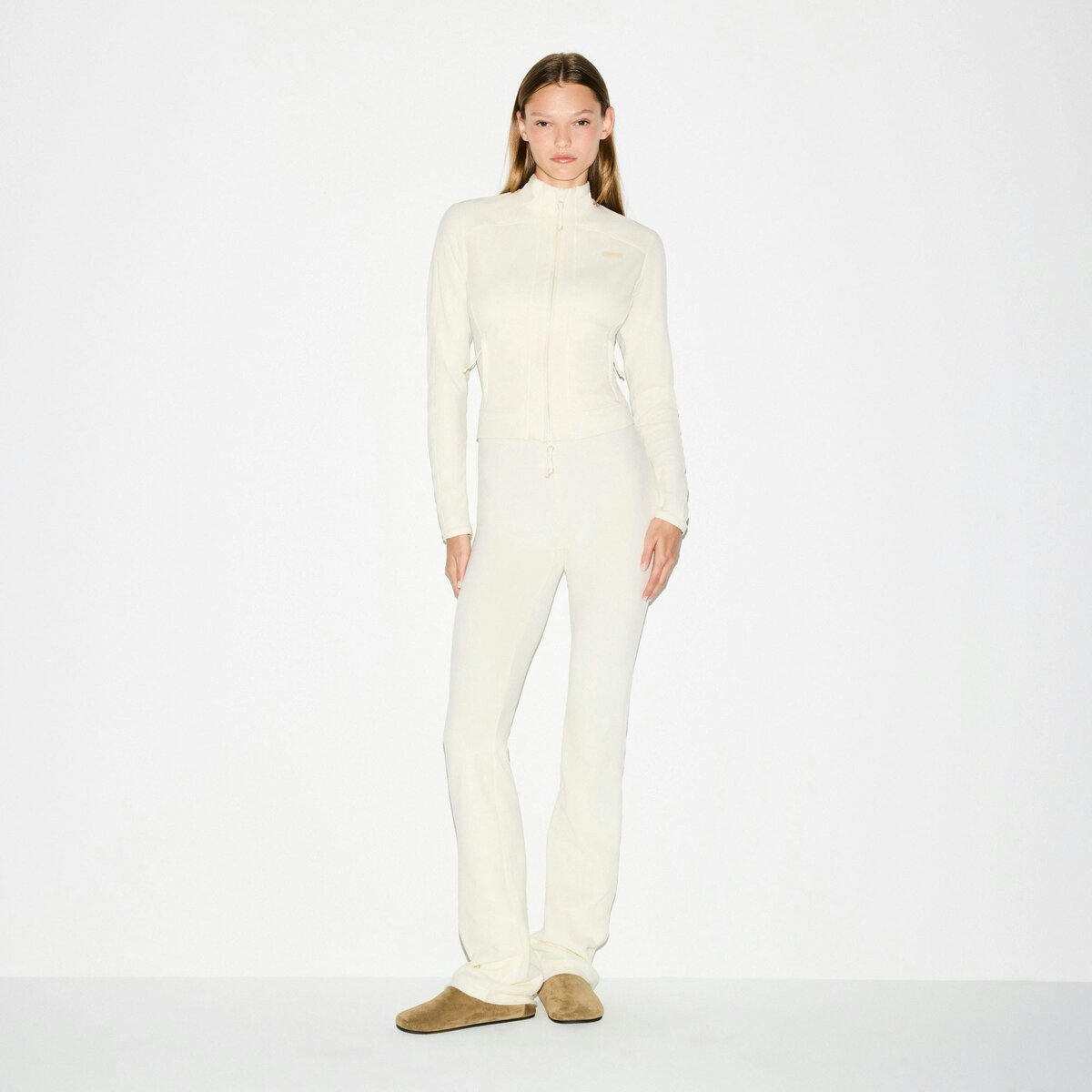 Cozy, cool, and collected. Featuring our midweight polar fleece and contrast panels, this fitted zip-up brings plush softness and sporty edge to your winter uniform. Features a sleek mock neck, relaxed sleeves, and cozy side pockets for ultimate comfort. Finished with a silicone SKIMS logo patch at the chest, this style hits below the natural waist and fits true to size.