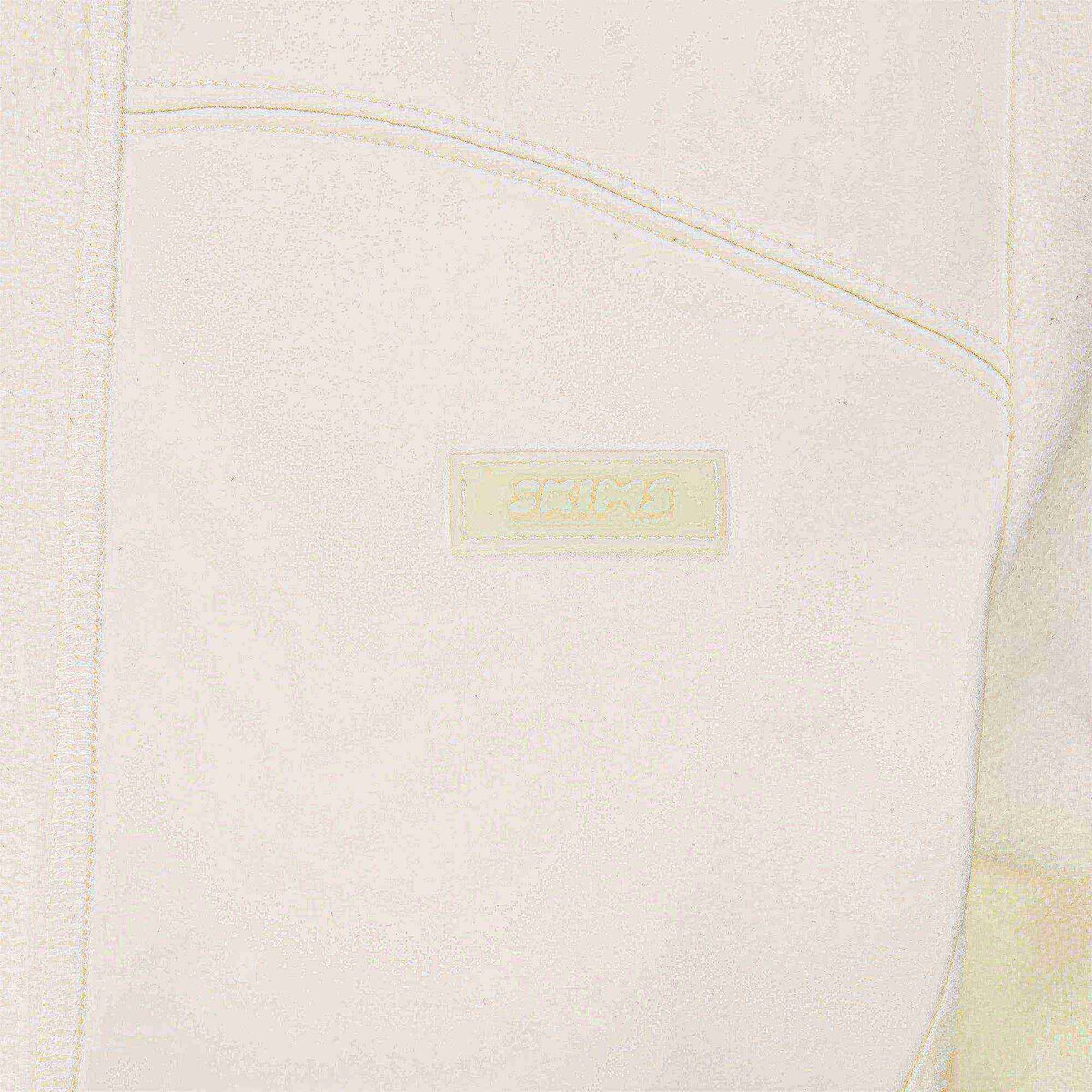 • Zip front, Mock neck, Contrast fabric front panels, Silicone SKIMS logo patch at wearers left side chest, Relaxed fit sleeves, Hits below natural waist