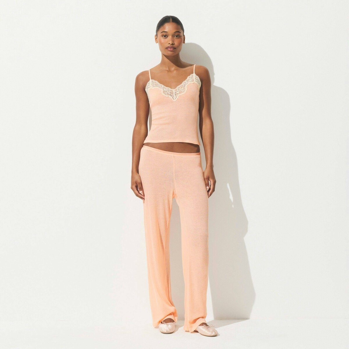 Delicate and dreamy. Make a sweet statement in this relaxed, airy Sheer Rib cami with feminine lace trim detailing. Complete with adjustable straps and fits true to size.