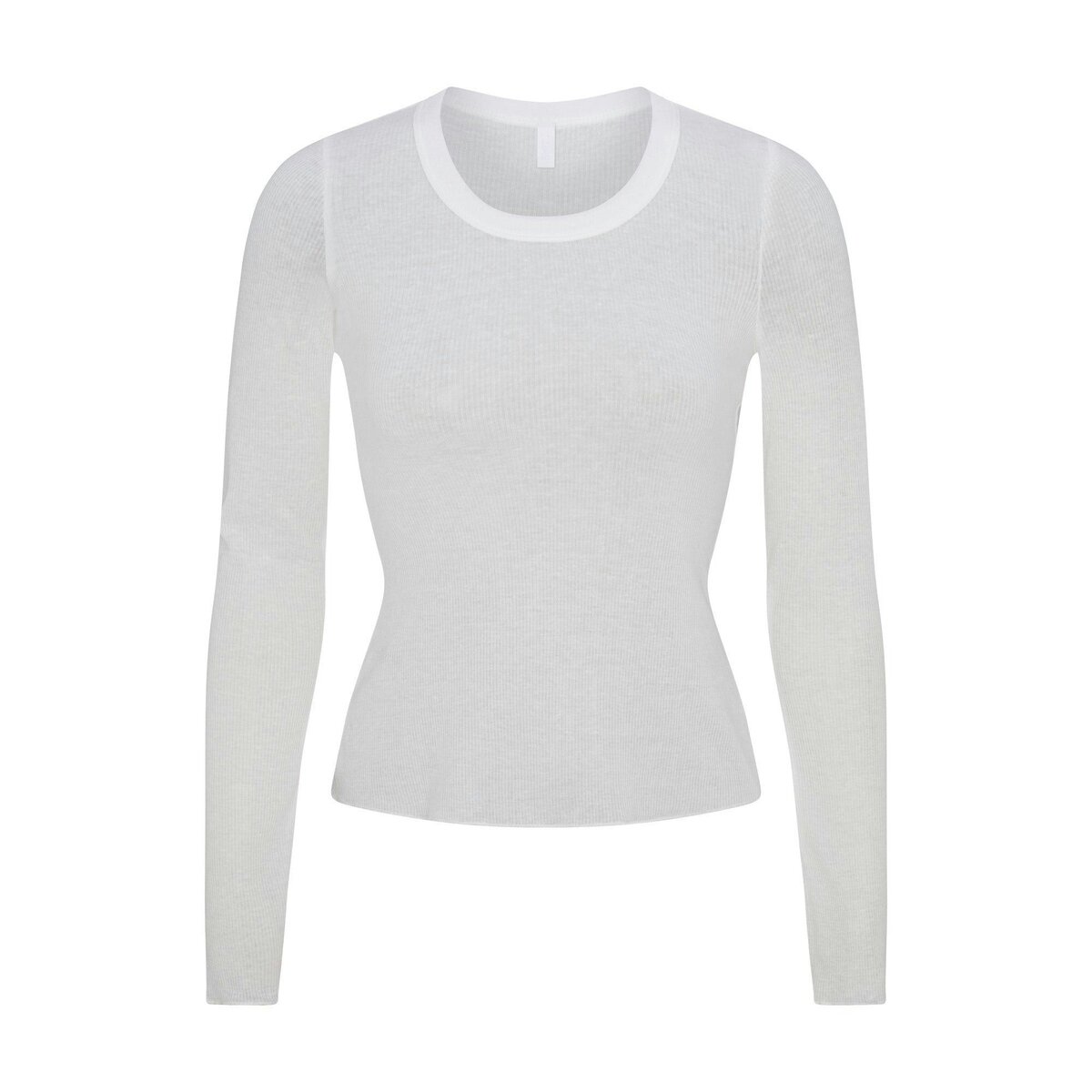 SHEER RIB LONG SLEEVE CREW NECK TOP