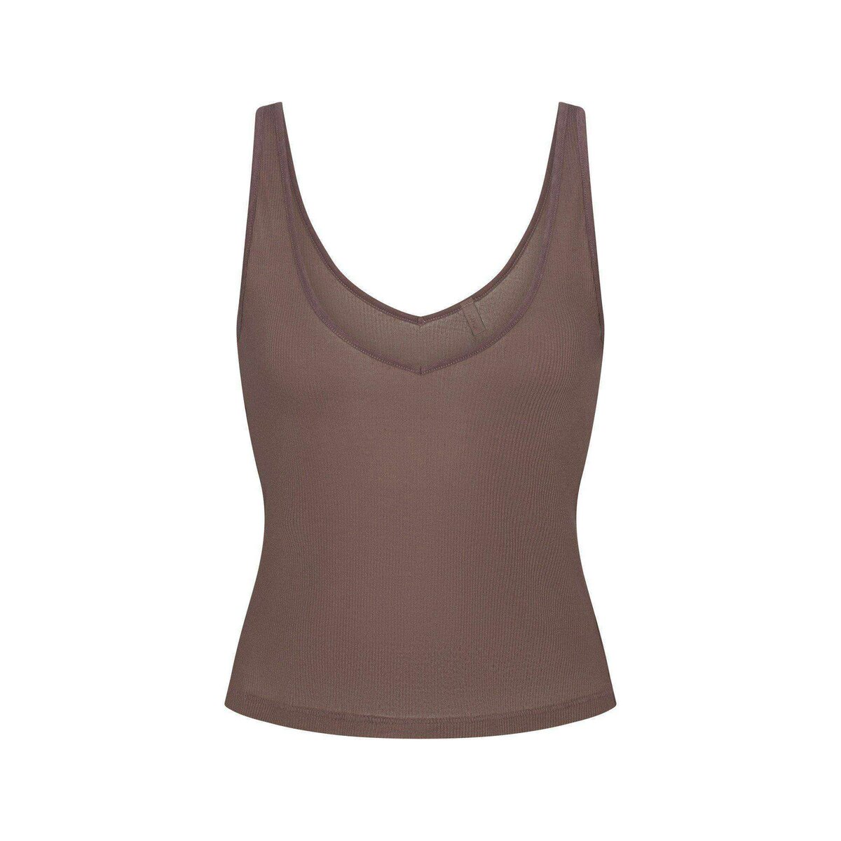 Heat up your everyday look. This plunge tank is designed in our airy, ultra-soft ribbed fabric with a sheer, next-to-nothing look to keep you cool. Features a sexy low back and flattering fit. Fits true to size.
