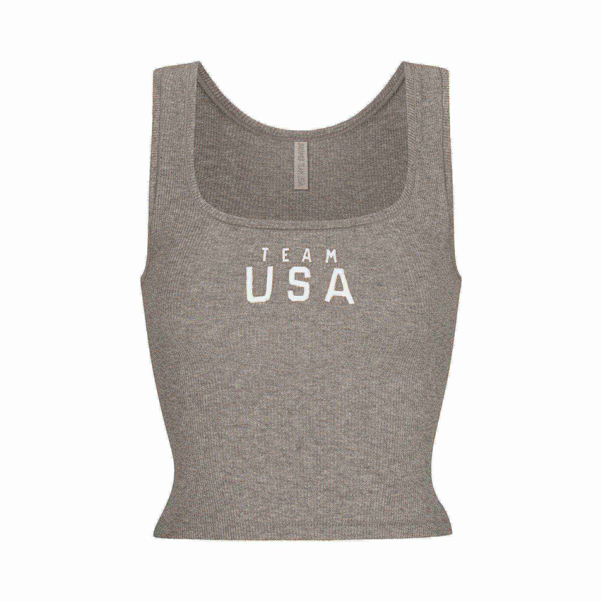 Stay cool with the SKIMS FOR TEAM USA COTTON RIB OLYMPIC TANK in HEATHER GREY. Limited edition. Shop now.