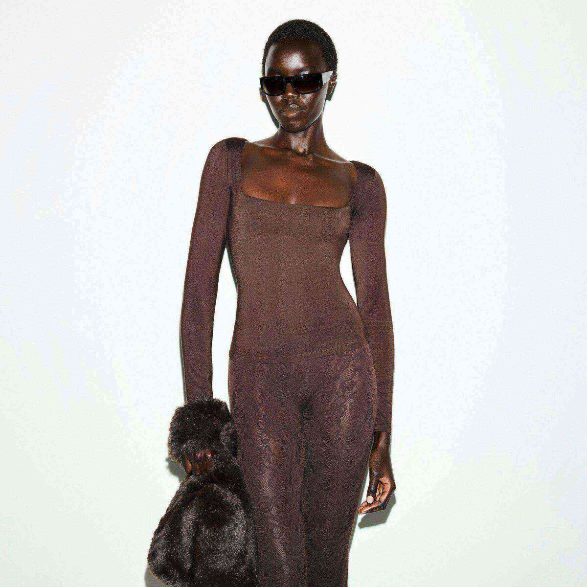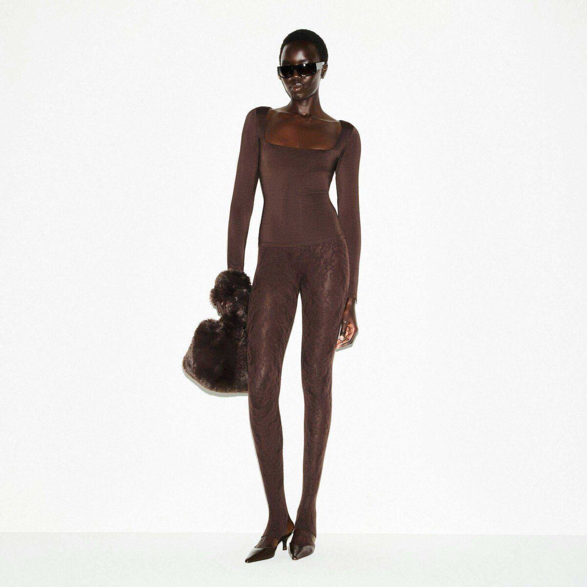 - Straight neckline, Interior shelf bra for light support, Long sleeves, Fits tight to body, Standard length