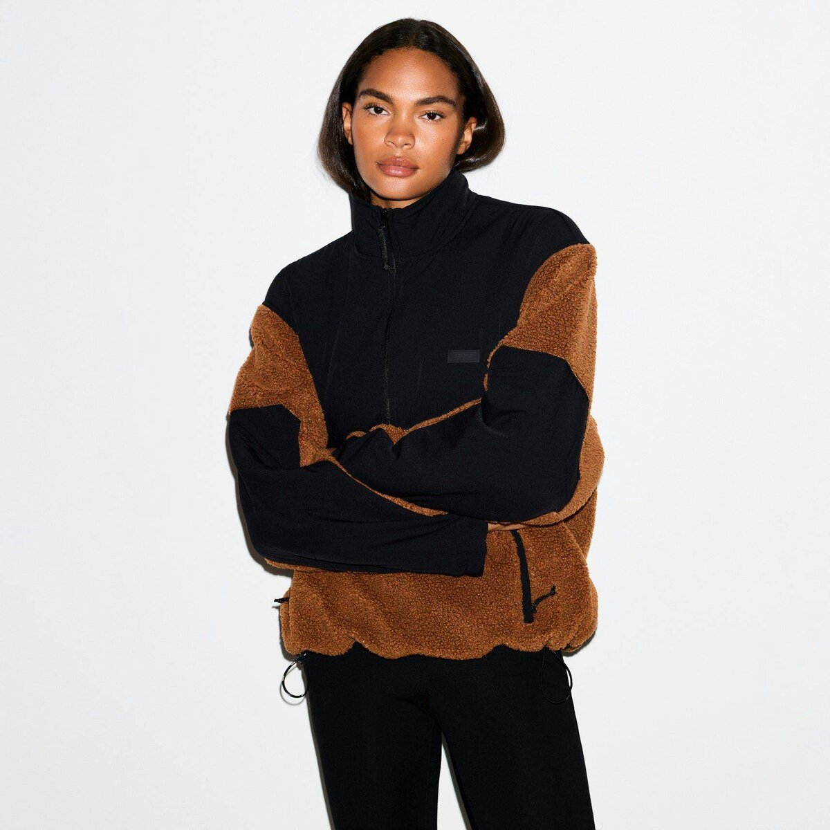 Your comfiest second layer. This relaxed half-zip pullover is essential to any cold-weather wardrobe thanks to our signature soft faux shearling. Features a loose mock neck, woven panel detailing, and mesh lining for a sporty look. Complete with side pockets, an adjustable cord at the hem, and a SKIMS logo on the side chest. Fits true to size.