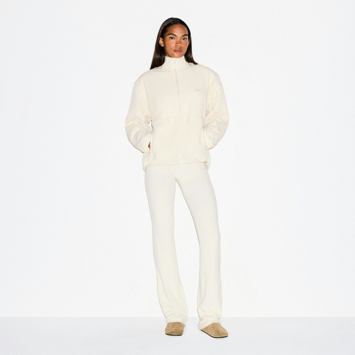 Your comfiest second layer. This relaxed half-zip pullover is essential to any cold-weather wardrobe thanks to our signature soft faux shearling. Features a loose mock neck, woven panel detailing, and mesh lining for a sporty look. Complete with side pockets, an adjustable cord at the hem, and a SKIMS logo on the side chest. Fits true to size.